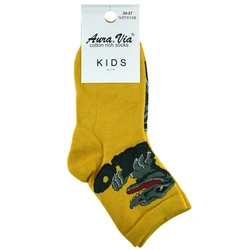 Żółte skarpetki dziecięce z motywem dinozaura bawełna Aura.Via GZF9108